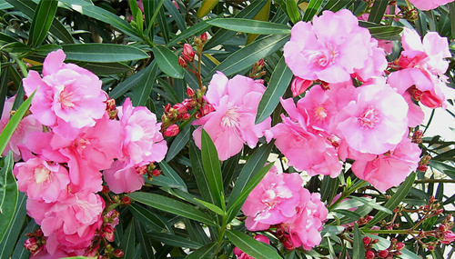含羞草含有微量的毒性,它體內的含羞草鹼是一種有毒物質,這種毒素,接觸過多,會引起眉毛稀疏、頭髮變黃甚至脫落;含羞草鹼,還會損傷人的皮膚,因此注意不要用手指去撥弄含羞草。 夾竹桃