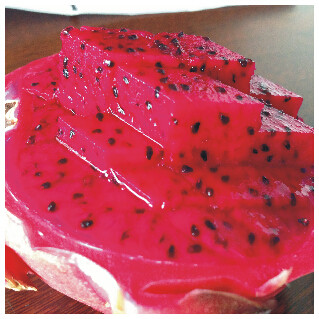 在吃火龙果时,可以用小刀刮下内层的紫色果皮——他们可以生吃,也可以凉拌或者像霸王花一样放入汤里。