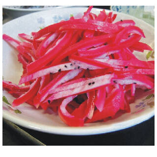 3、果肉切成块就可以吃了,皮切成丝放在盘子里